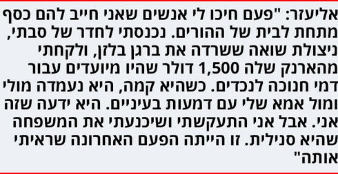 "אף אחד בבית שלי לא דיבר על זה. אני מאמין שהם ידעו שגנבתי מהם, אבל הם ניסו להשתיק את זה. קשה לי להאמין שהם לא שמו לב שמאות אלפי שקלים נעלמים. כנראה שהם פשוט לא ידעו מה להגיד, איך להתמודד עם זה. אני מבין אותם, זה דורש הרבה תעצומות נפש.