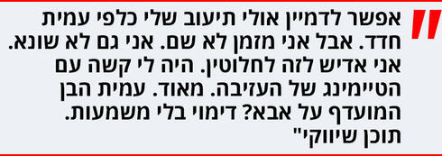 "אלו דימויים שהיו בשביל היופי, אין לזה באמת משמעות. עמית הוא לא בן וגם לא בן דוד שלישי. זה כמו תוכן שיווקי שיש מישהו שכנראה מאוד נוח לו עם זה ואם זה עושה לו טוב שיהיה לו לבריאות".