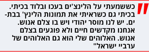 "כשראיתי איך מוציאים ספרי תורה מבתי כנסת שרופים התחלחלתי. המראות האלו, של ספרי קודש שרופים, הם מראות שאסור לנו לראות. חוק וסדר הם לא פריבילגיה וחובתה של המדינה להעמיד את כל הפורעים לדין. כששמעתי על הלינצ'ים בעכו ובלוד בכיתי. בכיתי גם כשראיתי את תמונות הלינץ' בבת־ים. יש לנו מוסר יהודי ויש בו צלם אנוש. אנחנו מקדשים חיים ולא פוגעים בצלם אנוש. האלוהים שלי הוא גם האלוהים של ערביי ישראל. וגם אצלם יש צלם אנוש. עכשיו זה הדבר שדחוף לנו לחזק. בלוד ראינו שמי שהצליחה לייצר רגיעה זו דווקא החברה האזרחית. אנשים טובים שרוצים להמשיך לחיות בעיר מתוך כבוד הדדי. מה שהם עשו אלף שוטרים לא יצליחו לעשות. זה לא יכול לבוא מלמעלה, זה חייב לבוא מלמטה".