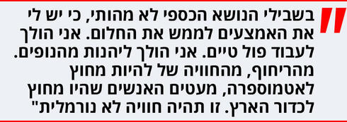 "אתה צודק. זה פותח לי תחום חדש. אם היית שואל אותי מה אני אעשה אחרי, אז אולי, אני אומר עכשיו בשיחה כשזה עולה - אולי החשיפה הזאת של שנה וחצי, של התעסקות בעולם החלל, באמת פותחת אפשרות".