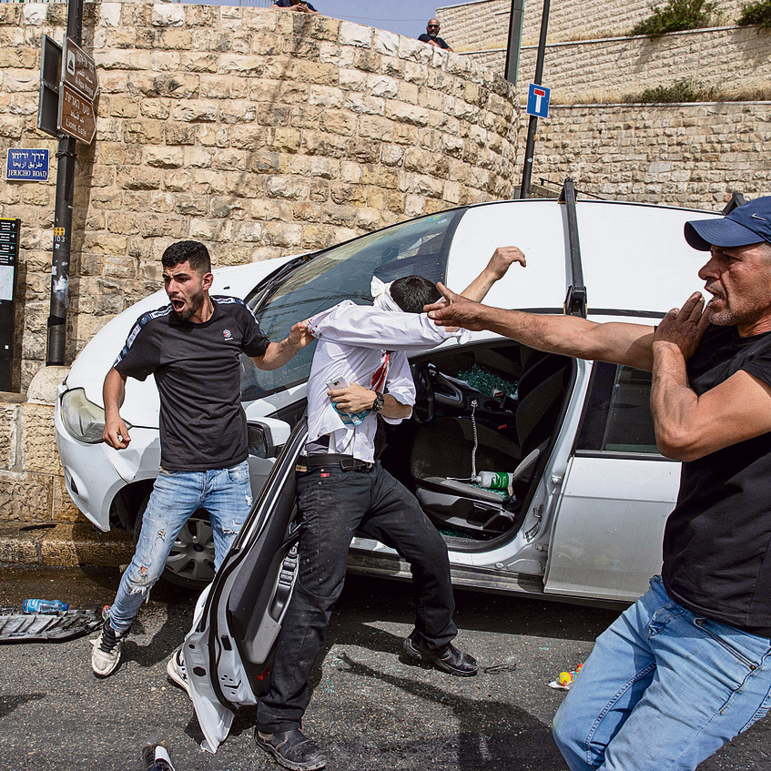 א', קורבן התקיפה הראשונה בגל המהומות, מבקש לשמור על חשאיות שמו. אולי יהיה מי שינסה לנקום. אולי חשש אחר. התקיפה אירעה ביום ירושלים, בדרך לכותל המערבי. "זה לא קרה לנו בסמטה חשוכה, זה קרה בכביש ראשי ביום ירושלים. נהגתי ברכב, והיו איתי שני חברים נוספים. פתאום, משום מקום נזרקה עלינו אבן. הבחנתי שזה ערבי מהרחוב. אחרי שנייה נזרקת עוד אחת שפוגעת בשמשה האחורית. אני מבין שהוא לא מתכוון להרפות. נתתי גז כמה מטרים קדימה, חשבתי שהתרחקתי מספיק, הבנתי מהר מאוד שלא. האבנים המשיכו לנחות על הרכב. חתכתי ברמזור אדום לנתיב הנגדי, הייתי חייב להימלט. תוך כדי התקשרנו למשטרה.