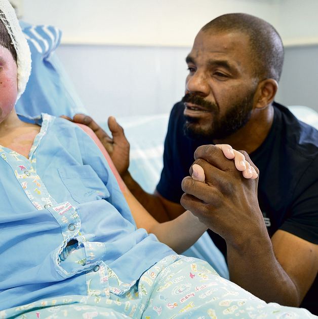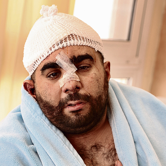 "אמרו לנו שהוא יצטרך שיקום של שנה. צריך לשמור עליו, שלא ייצא לשמש. הוא לא מעכל את מה שקרה לו, הוא לא רוצה לחזור הביתה, זה מזכיר לו את הרגעים הנוראיים. הוא כל הזמן שואל אם האחים שלו בסדר, מפחד שבפעם הבאה זה יקרה להם. בלילה הוא מדבר מתוך שינה. אני לא מצליח להבין מה הוא אומר, אבל הוא נראה מבוהל. אז אני מתחיל להרגיע אותו ולהגיד לו, 'מוחמד אל תדאג, אני איתך'.