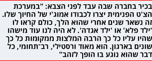"בדרך כלל", ממשיך אותו בכיר, "הילדים האלו הם בחבורה שלהם או בתוך העולם שלהם. זה מאוד קשור לזה שהם ממש צעירים. אבל הוא היה אחד מהחבר'ה. זה שהולכים לאכול איתו המבורגר. לא תפסנו אותו כילד אלא כבוגר לכל דבר. גם בהתנהגות וגם מבחינה חברית, ודאי כמתכנת־על. זה נדיר למצוא שילוב כזה בין כישרון לחברותיות ואנושיות, אבל הוא היה כזה.