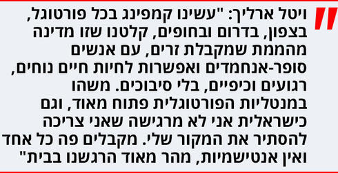 "ברור. זה שונה לגמרי כשאת מדברת כאן פורטוגזית, לכן הדבר הראשון שעשינו זה ללמוד את השפה. הישראלים גילו את פורטוגל בחמש-שש השנים האחרונות, בזכות הטיסות הסדירות והזכאות לדרכונים. כשאנחנו הגענו לכאן לפני שלוש שנים, כל מי שפגשנו ברחוב אמר לנו 'וואו, אתם הישראלים הראשונים שאני פוגש'. היום המצב שונה לגמרי".