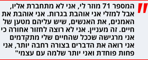 "יש בי גם איזשהו פחד, אבל אני לא מתמקדת בו. גם כשאני פוחדת, אני עושה. אני יודעת שאני בעיקר אתרגש".