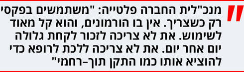 "אני מסכימה עם הביקורת הזאת. בהחלט הגיע הזמן שגברים ייקחו אמצעי מניעה. בארה"ב הייתה חברה שערכה מחקר על אמצעי מניעה בקרב גברים. אחרי שישה שבועות כל הגברים נשרו מהמחקר כי הם לא הצליחו להתמודד עם תופעות הלוואי. זה נתון משוגע".