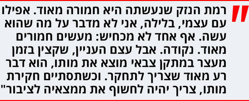 "צריך מצד אחד לתחקר מה קרה באותה יחידה ולמה הוא עשה מה שעשה, ולתחקר בצורה הכי מעמיקה למה הוא מת. אפשר היה למצות את הדין איתו גם בלי שיאבד את חייו. זה רע מאוד שהוא מצא את מותו תחת ידי צה"ל.