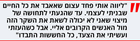 "כי כמו בתקופת הנעורים, תמיד ליווה אותי פחד עצום שמא אאבד את כל החיים שבניתי לעצמי. עד שהגעתי לתחושה של מיצוי שאני לא יכולה לשאת את השקר הזה מול האנשים הקרובים אליי. לא עניין אותי כלום בחיים, ראיתי לנגד עיניי את האמת שנחשפת. פשוט רציתי להתנקות מכל השקרים, מאי־אמירת האמת. אבל כשהעזתי ועשיתי את הצעד, כל החששות התבדו. הרגע הזה של ההיחשפות היה תחושת הקלה עצומה".