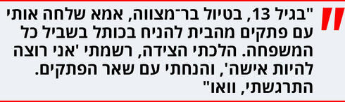 "כן. רגע משמעותי נוסף היה כשהנחתי פתק בכותל בגיל 13, בטיול בר־מצווה של בית הספר. כתבתי בו שאני רוצה להיות אישה".