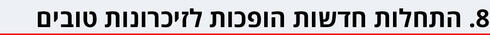 רוב האנשים חוששים מהתחלות חדשות: אוניברסיטה, מקום עבודה חדש, הסבה מקצועית, תחילת מערכת יחסים. הימים הראשונים מפחידים ומלאים בחששות עד שאנחנו שוכחים ליהנות מהם. אבל מחקרים שנערכו על ידי המכון לחקר האושר מצאו שאנו נוטים לזכור במיוחד את הימים הראשונים של חוויות חדשות. הימים האלה בדרך כלל לא מאושרים במיוחד בגלל החששות הרבים, אבל אחרי שהפחדים מתפוגגים אנחנו נוטים לזכור את הימים הראשונים לטובה. אלה יכולים להיות פגישה ראשונה או יום ראשון בעבודה. אם אתם לפני התחלה חדשה, מכל סוג שהוא, נסו לייצר מראש זיכרון טוב של הימים האלה ולהתייחס לחרדות מהתחלה חדשה בפרופורציות הנכונות. זכרו שאתם חוששים, אבל זה יכול להיות אחד מהימים שתזכרו לטובה כל חייכם.