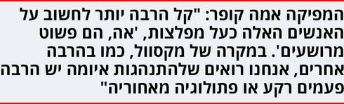 "זה היה רשלני לא לחקור את התיאוריות האלה ולא להכניס אותן", אומרת קופר. "מה שעשינו זה להציג אותן ובאותה נשימה להכניס מישהו שלגמרי לא מסכים איתן, כדי להיות הוגנים ולהראות את שני הצדדים. אנחנו לא באות ואומרות שזה מה שהם עשו, אנחנו מציגות את התיאוריות כפי שהן - תיאוריות".