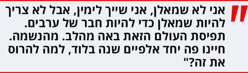 "יכול להבין, בטח, למרות שנשבע לך ש־90 אחוז מהאנשים פה באו כי הם חיפשו משהו עם משמעות, איזו עשייה חברתית, לא עלה על דעתנו לגרש מפה את הערבים או לייהד את השכונה. זה כבר לא כל כך משקף את הדור שלנו, אנחנו יותר חברתיים. וגם אם הייתי רוצה, אני פרקטי, לא אפשרי שהתושבים פה יתפנו ולוד תהפוך לעיר יהודית. אני מדבר איתך על ערכים עמוקים יותר, דברים אנושיים. את היית מזיזה את האוטו שלך כי את יודעת שעומדים לשרוף מכוניות ולא מזהירה את השכן שלך? ונגיד שפחדת לעצור את הפורעים כשהם ריסקו לנו את האוטו, לא תתקשרי כמה שבועות מאוחר יותר לשאול אם הכל בסדר, להצטער שזה קרה?"