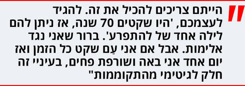 "ברור שאני נגד אלימות. אבל אם אני עַם שקט כל הזמן ואז יום אחד אני באה ושורפת פחים ושוברת זכוכית של בניין עירייה, בעיניי זה חלק לגיטימי מהתקוממות. לא רציתי שיגיעו לבתים של אנשים, שישרפו דירות, לדעתי זה קרה רק בלילה השני וזה היה לי יותר מדי, אבל אני חושבת שמה שגרם לזה זה שאתם לא הפגנתם אמפתיה למאבק שלנו. בערב הראשון יצאנו לרחובות בגלל אל־אקצא, שייח’ ג'ראח, אבל גם כי התקפתם בעזה, וכאב לנו הלב על ילדים קטנים שנפגעו מטיל שלכם. ועדיין הדברים התלקחו ממש רק בלילה מאוחר, כשרצחו את מוסא חסונה (ערבי שנורה למוות במהומות בלוד - ד"ס). אז תהיו פרקטיים. במקום זה ביום אחרי, זה של ההלוויה של חסונה, הבאתם מג"ב ומשטרה ואוטובוסים עם מתנחלים אלימים וגזענים מבחוץ שירביצו לנו, ורביבו התחיל להגיד דברים בלתי נסבלים על ערבים בתקשורת. כל עוד אתה ממשיך להסית, הצד השני בחיים לא יפסיק".