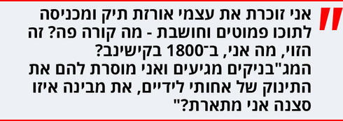 אין בן אדם אחד שלא סיפר לי את הסיפור הזה, על איך הוא ניסה להתקשר למשטרה בערב הראשון ההוא. ככה מתחילה הפוסט־טראומה שלהם. "בערב השני כבר ידענו שאנחנו צריכים לברוח", אומרת אורית, אמא צעירה, "אני זוכרת את עצמי אורזת תיק ומכניסה לתוכו פמוטים וחושבת לעצמי ‑ מה קורה פה? זה הזוי, מה אני, ב־1800 בקישינב? אני יהודייה שחיה בארץ ישראל, ופתאום אני בורחת מהבית עם חפצי הקודש שלי והבגדים בצרור ולא יודעת אם אני אצא בחיים. והכי מפחיד היה לחלץ את אחותי שגרה לידי, כי היא יש לה תינוק והיא בהיריון, ואני מתה מפחד, איך היא תצא איתו. המג"בניקים מגיעים ואני מוסרת להם את התינוק לידיים, את מבינה איזו סצנה אני מתארת לך, פה, 12 קילומטר מתל־אביב, אני מוסרת את התינוק העטוף של אחותי לידיים של המחלצים ומתפללת שאמן שהערבים ייתנו לו להגיע בלי פגע עד האוטו".