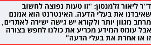 {"type":"image","data":{"imageId":"ArticleImageData.5967755~10835223","url":"https://ynet-pic1.yit.co.il/picserver5/crop_images/2021/07/19/10835223/10835223_0_0_640_360_0_large.jpg","caption":"","credit":"צילום: Shutterstock"}}"ההשתתפות בפלטפורמות וירטואליות לא מוזילה אוטומטית את הכתיבה עצמה או את הכותבים", אומר ד"ר ליאור זלמנסון, חוקר אינטרנט בפקולטה לניהול באוניברסיטת תל־אביב. "ראשית, זו הדרך המהירה והאפקטיבית ביותר כיום להגיע לקוראים ולנהל איתם דיאלוג. שנית, היא באמת דמוקרטית יותר בכך שהיא לא תלויה בסוכן ובמתווך הקלאסי דוגמת העיתון או המוציא לאור. לבסוף, היא מייצרת סגנון ותנועות משלה - למשל עם הערבוב בין מילים לדימוי של תרבות המם (Meme) או המגמה של כותבים רבים להתנסות בכתיבה אישית וחשופה יותר, שהיא גם מעין מחאה על השימוש הרווח ברשתות חברתיות כדי להציג רק את ההיילייטס של החיים".
