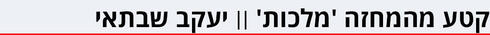 "בדיוק, ולכן אני טוען שהגילוי הזה יצא בטיימינג מטורף. כי בזמן שישבתי בארכיון המדוגם שלו והתעסקתי עם 'אוכלים' בדיוק התפוצצה פרשת החמגשיות של שרה נתניהו. זה היה כמו שיח שהתקיים בין ימי התנ"ך למציאות העכשווית. או למשל, כאשר בסיפור המקראי דוד שולח את אוריה החיתי למות כדי לקחת את בת שבע, שבתאי במחזה הקצר 'אהבה' מתאר זאת כך: 'אדם לא מוכרח להיות אשם בשביל להיות אשם. יש דברים יותר חשובים מאדם כזה או אחר - המלך, החוקים, הממלכה. מה שקובע זה המטרה והצרכים'. וכאשר שבתאי כותב ב'מלכות' על זמרי – המלך שישב על כס המלכות רק שבוע ימים – ואומרים לו 'אתה רוצח', זמרי עונה: 'סליחה? קדושת החיים היא לא הדבר הקדוש ביותר. הכול תלוי במצב ובמטרה'. זו תהיה הזדמנות לתבוע את עלבונו של שבתאי כמחזאי".