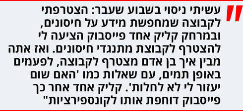 "פייסבוק עשתה דברים טובים. אני בהחלט אומרת את זה. אבל יש שאלה גדולה יותר: האם יש יותר טוב מרע? אנחנו לא מצפות שאנשים יפסיקו להשתמש בפייסבוק, בווטסאפ ובאינסטגרם. יש לי חברים בכל העולם ואני רוצה לתקשר איתם וזאת הדרך. הרעיון הוא להבין את המשמעות של המידע שנאסף עליך. אני נזהרת על הפרטיות, אבל לא מסירה את הטכנולוגיה מהחיים שלי".