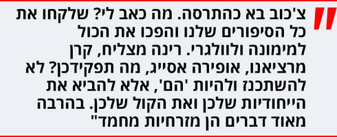 "אז אני אומרת, יש מה ללמוד מאחת שכל הזמן חוטפת, מורידה את הראש. ממשיכה ללכת לעבודה".