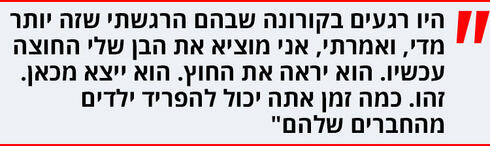 "בקורונה היו רגעים שהרגשתי את הבדידות של דניאל. הוא בן יחיד, ומעצם זה שהרחיקו אותו מכל החברים שלו ראיתי את המצוקה שלו. כל הזמן הייתי עסוק באיך אני מפצה אותו על זה; איך אני מעורר אותו, משמח אותו, מעניין אותו".