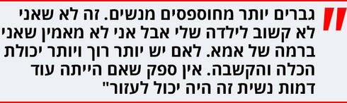 גברים יותר מחוספסים מנשים. זה לא שאני לא קשוב לילדה שלי, אבל אני לא מאמין שאני ברמה של אמא. לאם יש יותר רוך ויותר יכולת הכלה והקשבה. אין ספק שאם הייתה עוד דמות נשית זה היה יכול לעזור. הקטע הטכני זהה בין גברים לנשים. את זה כולם יכולים לעשות. הקטע הרגשי בעיניי לוקה בחסר אצל גברים. ככה נולדנו כנראה.
