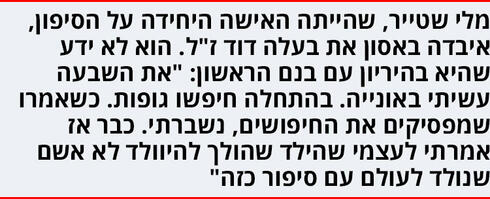 היא לא שיתפה את דוד בהרגשה שהייתה לה. הוא ימות מבלי לדעת שהשאיר בן מאחוריו. "בוודאי שאני מצטערת", היא אומרת היום.
