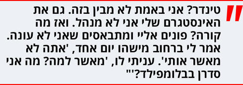 הוא צוחק. "שלא תחשוב לשנייה שנתתי פאנץ' מכוון פה. אני באמת לא מבין בזה. גם את האינסטגרם שלי אני לא מנהל. ואז מה קורה? פונים אליי ומתבאסים שאני לא עונה. אמר לי ברחוב מישהו יום אחד, 'אתה לא מאשר אותי'. עניתי לו, 'מאשר למה? מה אני, סדרן בבלומפילד?'"