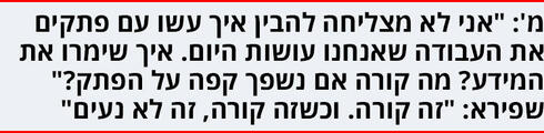 "אני לא מצליחה להבין איך עבודה שאנחנו עושים היום, נעשתה פעם", נחרדת הקצינה מ' מנתניה. "העבודה שלנו מורכבת, כזו שבה הדברים צריכים להיות מסודרים ומהירים, והמידע צריך לעבור מבן אדם לבן אדם לאורך השרשרת. אז איך עשו את זה עם פתקים? איך שימרו את המידע? מה קורה אם נשפך קפה על הפתק?"