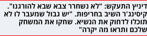 דיניץ התעקש: "לא נפתח את הכתר ונשחרר צבא שבא להורגנו. לא קרה כדבר הזה בכל ההיסטוריה הצבאית", אמר. קיסינג'ר ידע דבר או שניים על היסטוריה צבאית. "מעולם גם לא קרה שמדינה קטנה גרמה למלחמת עולם בדרך כזאת", השיב בחריפות. "יש גבול שמעבר לו לא תוכלו לדחוק את הנשיא. שחקו את המשחק שלכם ותראו מה יקרה".