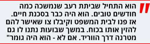 "7 ביולי 99', יהוד. GMC לבנה עוצרת בקצה רחוב ביאליק, ליד בית מוקף גדרות וצמחייה עבה. מהמכונית המסחרית מורד באלונקה הרב עוזי משולם. דממה מקפיאה. חמש שנים וחצי לאחר שהובל לכלא כגיבור, חוזר הרב משולם לביתו ביהוד כשבר כלי".