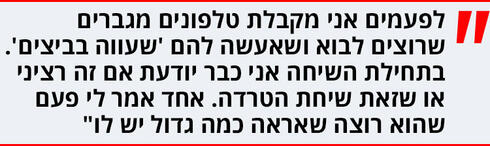 "השיחות המביכות הופכות לבדיחות פנימיות עם החברות שלי, אבל לא הכול צחוק. נאלצתי להעביר את העסק שלי מקום פעמיים בגלל מטרידנים. היה בחור שבאופן קבוע הטריד בעלות עסק בתחום באזור. היה מתקשר בשעות הזויות, מבקש שאקבל אותו בשעות מוזרות, 'אני חייב שתטפלי בי'. בהתחלה לא נעים לא לענות, הרי המטרה היא להרחיב את מעגל הלקוחות, אבל שיחות בשתיים בלילה מגבר שאת לא מכירה זה לא נעים".