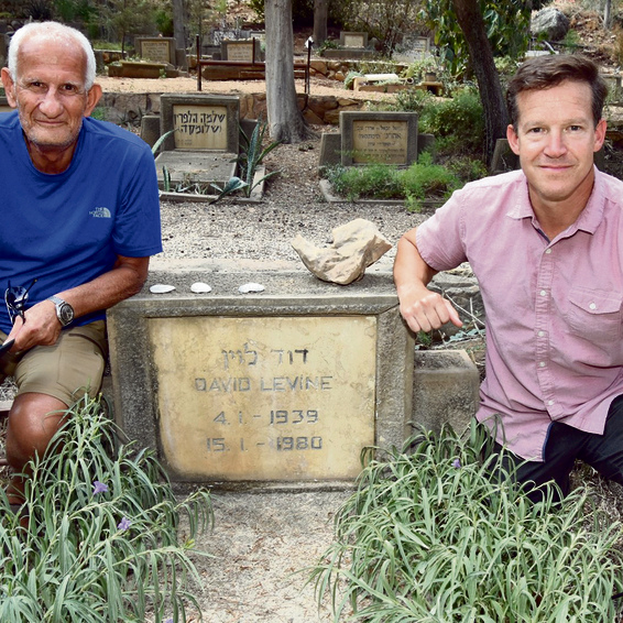 אדם לוין (מימין) ואבנר הכהן ליד קברי אבותיהם, אתמול | צילום: דדה עינב