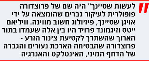 שטיינך הוא גם זה שהציע לרפא הומוסקסואלים על ידי החלפת אשכיהם באלה של הטרוסקסואלים. אבל כפי שהאטר אפסטין מחדדת, לא מדובר בשרלטן אלא בחוקר רב הישגים שתרם להבנת הייצור של הטסטוסטרון והיה מועמד על כך לפרס נובל.