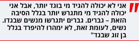 "אני לא יכולה להגיד מי בוגד יותר, אבל אני יכולה להגיד מי מתגרש יותר בגלל הסיבה הזאת – גברים. גברים יתגרשו מנשים שבגדו. נשים, לעומת זאת, לא ימהרו להיפרד בגלל בן זוג שבגד. היו לי לא מעט נשים שהגיעו אליי להתגרש וסיפרו לי שבין היתר בן הזוג בגד, אבל זאת לא הסיבה שבגללה הן מתגרשות, אלא שבנוסף לזה היו דברים נוספים".