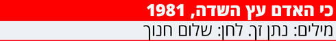 "שיר נוסף שמבוסס על פסוק מהתנ"ך. ההיכרות שלי עם נתן החלה ב־1980, כשגלי צה"ל עשו ערב מחווה לספר שלו 'צפונית מזרחית', אחרי שחזר מ־11 שנה בלונדון. שרתי שם כמה משיריו, שלא היו שלי במקור, והוא אהב את מה שעשיתי. דיברנו על זה שאולי נעשה אלבום יחד, ונתן התלהב. בוויקנד אחד הוא כתב המון שירים בביתו בחיפה, כולל את 'כי האדם עץ השדה', והביא לי את הטקסטים. 'כי האדם עץ השדה' היה לי קצר קצת, כי השיר נכתב רק בשני בתים. ביקשתי מנתן להאריך, הוא נכנס לחדר וכתב בית נוסף, זה עם השורה: 'כמו העץ הוא צמא למים'. העברנו את המילים לשלום חנוך, חשבנו שהוא מתאים להלחין את זה, ובלי קשר נורא רציתי שיכתוב לי משהו. הגעתי לבית של שלום והיה לו בגינה עץ, שמתחתיו הוא ישב ושר לי את השיר. נפלתי כבר בשמיעה ראשונה. שלום עשה לחן מדהים".
