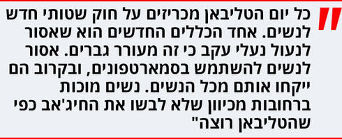 חמש נשים צעירות, בשנות ה־20 לחייהן, סיפרו לנו בשבוע האחרון כיצד השתנו חייהן מקצה לקצה. הן פוחדות. השיחה לא פעם מתנתקת, הן מתחרטות ואז שוב יוצרות קשר. רוצות שהעולם יידע מה עובר על העם האפגני בכלל ועל הנשים האפגניות בפרט. הן מספרות על חיים שהפכו לבלתי נסבלים: אסור להן לרכוש השכלה, לעבוד, לצאת לבדן מהבית כדי לקנות מצרכים - אלא רק בליווי גבר, לנעול עקבים, ללבוש בגדים צבעוניים והן חייבות לכסות את עצמן באופן מלא כשהן יוצאות מהבית.