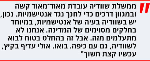 "אבל שוודיה רוצה גם להיות משהו בעולם, לא רק מדינה שתורמת מיליארדים ואף אחד לא שומע עליה, במיוחד כשמעבר לגבול יש את הסכמי אוסלו. זה, ודוקטרינת פלמה, דחף את שוודיה למקומות קיצוניים. כשהם הכירו במדינה הפלסטינית הם שיחקו ב'בעל הבית השתגע' וחשבו שכל אירופה תלך אחריהם. אז ישראל החזירה להם ב'בעל הבית עוד יותר משוגע' והם נשארו לבד לגמרי, ואפילו די מצורעים מבחינת המעורבות שלהם בסכסוך. תוסיף לזה את הסכמי אברהם שבעצם אמרו לשוודיה: אתם תקועים בדיפלומטיה של שנות ה־70, תתקדמו. מדינות ערביות אחרות לא סופרות אתכם ולא את הפלסטינים. יש מזרח תיכון חדש ואתם בכלל לא חלק בו. שוודיה הבינה שהיא חייבת יחסים עם ישראל כדי לחזור לחדר. לא לשולחן, רק לחדר. וזה מה שהם עשו בשנתיים האחרונות. אני בטוח שלא קל להם להוציא מהגרון ביטויים כמו 'ישראל היא מדינת הלאום של העם היהודי' או 'לישראל יש זכות מלאה לשמור על ביטחונה' (אמירות שהשמיעו שרת החוץ וסגנה – ז"א). אבל הם עשו את זה".