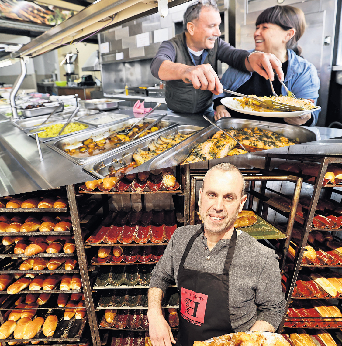 חורי לא נואש ולמרות הנזק העצום הוא הקים מחדש את "חורי בייקרי", גן עדן רחב ידיים (800 מטר מרובע) לנרקומנים וג'אנקיות של בצקים ופחמימות. אני עומד במרכז החלל אפוף ריחות האפייה, מוקף במדפים ובתבניות השופעים כל טוב, ומתקשה להחליט לאן לפנות קודם. האם לטעום את אוזני המן, ואולי לנשנש בורקס לוהט ושמא עליי לנגוס באחת העוגות. כל כך הרבה אפשריות עד שראשי מסתחרר. "הלחמים שלנו מאוד אותנטיים ומיוחדים ואין לנו תחרות", מתגאה בצדק חורי. "אי־אפשר למצוא אותם בכל מאפייה. לחמניית בית ספר שלנו הנקראת 'לחמניית נקניקייה' מאוד מבוקשת ועולה רק שקל וארבעים. לחמנית ההמבורגר וחלת השניצלים שלנו גם מיוחדות. הרוגלעך נחטפים וכך גם הבורקס תפוחי אדמה והקרואסונים".
