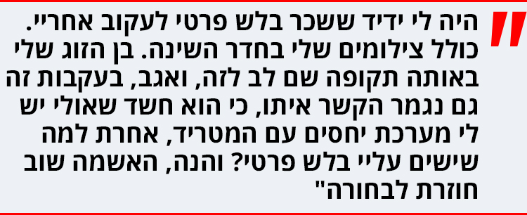 "כן, אבל בשלוש השנים מאז אותה שיחה היו גם היכרויות וחיזורים והצעות. ובאמת שעד הדקה ה־90 עוד התלבטתי איך ומה אני עושה".