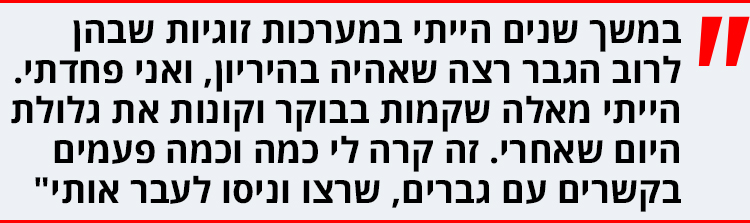 "כן, אבל החלטתי שאני לא רוצה להיות תלויה בגבר שאני לא סומכת עליו במאה אחוז".