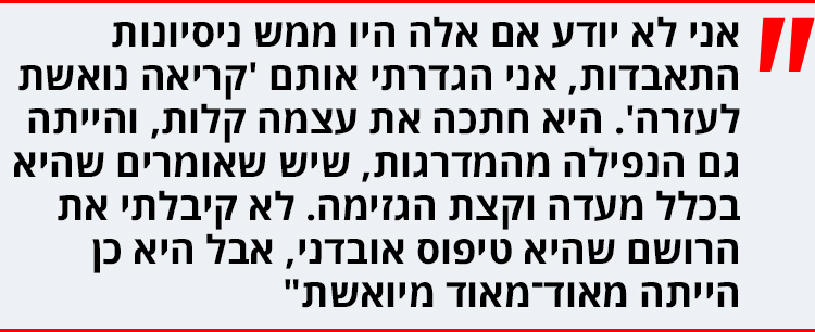 "נואשת, שבורה, כמו אסיר שאסור היה לו לדבר 20 שנה, כאילו היא צריכה להגיד הכול מהר לפני שהסוהרים יגיעו".