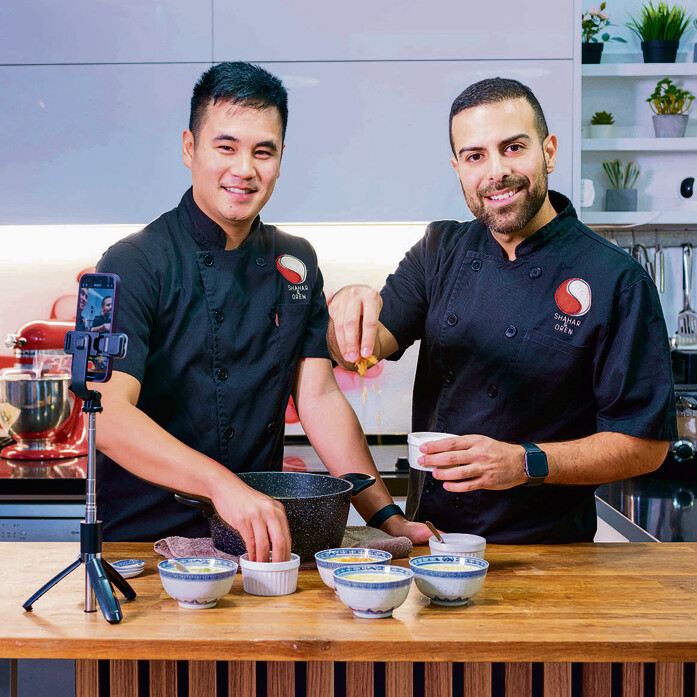 שחר: ההורים שלי הם סינים, שהגיעו לישראל כפליטיים בעקבות מלחמת וייטנאם והכירו פה בארץ כשאמא הייתה מלצרית ואבא טבח. בהמשך הם פתחו יחד מסעדות ואני נולדתי לתחום וגדלתי בסרוויסים מגיל אפס. מגיל שמונה אני עושה פוליש לסכו”ם. החיבור ביני לאורן מייצג את הגשר בין בישול ביתי למקצועי. בהתחלה פתחנו מסעדה יחד, בתל־אביב, על נחלת בנימין. זו הייתה אחת השנים הקשות בחיינו. אתה מגיע עם חלום לבשל לאנשים, אבל צריך בעיקר להתמודד עם ספקים. אחרי שנה סגרנו. אני הפכתי לדייל אוויר ואורן למד כלכלה, עד שהקורונה טרפה את הקלפים ונשארנו בבית. פתאום היה לנו זמן לחזור לבשל והתחלנו למכור אוכל סיני מהבית. אורן למד קונדיטוריה. התאהבנו בקולינריה מחדש, התחלנו להעלות מתכונים וזה תפס מאוד מהר. היום מזהים אותנו ברחוב כל הזמן, אפילו בחו"ל.