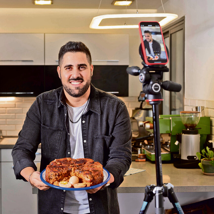 היום אני מקדיש את כל היום לטיקטוק ואחי מנהל את המקומות שלנו. מוצא את עצמי לפעמים עונה לעוקבים עד שלוש בלילה. יש לי ממוצע של 14 שעות ביום ברשתות. זה פסיכי. ערב קודם אני דואג למצרכים, קם, שותה קפה ומצלם שני מתכונים ביום, בלחץ של חגים אפילו שלושה. אחרי זה צריך לערוך, לשים דיבוב, אין רגע דל. אין מה לעשות, יש תחרות קשה ברשתות, למרות שאני לא מאמין בתחרות בעולם הזה כי לאף אחד אין בעלות על מוסקה, עוגת תפוזים ומפרום.
