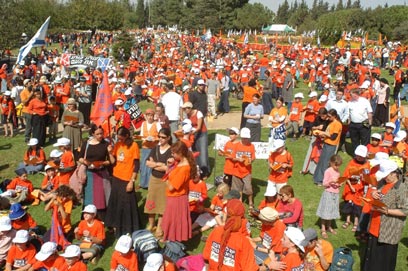 מתנגדי ההתנתקות שיגרו את הילדים לכנסת: כמה אלפי ילדים ובני נוער הגיעו בשעות הצהריים (יום ג') לגן הוורדים שמול הכנסת, כדי למחות ולהפגין נגד תוכנית ההתנתקות, שתעבור על פי ההערכות בהצבעה בכנסת הערב. גן הוורדים נצבע בעיקר בצבע כתום - צבע חולצות המפגינים. במשטרה מעריכים כי כ-15 אלף הגיעו למקום, והתפזרו בשקט אחר הצהריים.