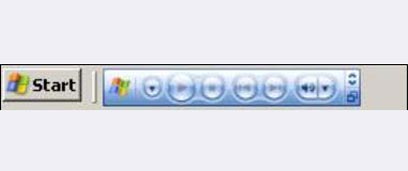 כדי להפעיל את האפשרות, צריך ללחוץ בקליק ימני על מקום ריק בשורת המשימות (השורה שבדרך כלל מופיעה בתחתית המסך, ושיש בה את כפתור התחל והשעון), לבחור ב-Toolbars (סרגלי כלים) ואז ב-Windows Media Player. בכך תפעילו את אפשרות ה-Mini Mode, ובכל פעם שתמזערו את הנגן הוא ייראה כך (בהגדלה):