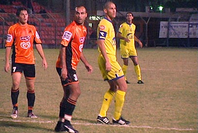 ששון (במרכז) מול נמני ומכבי ת"א. נותח בבירכו (צילום: ערן קמינסקי)