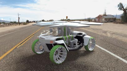 המעצבים אומרים: מכונית המצויידת בפחי מיחזור, ומציעה תא קירור מופעל באנרגיית השמש, תאים למצרכים לברביקיו על חוף הים ומנוע היברידי - מצד אחד ביו-דיזל, מצד שני חשמלי הנטען משקע ביתי. והכל ניתן למיחזור מלא.