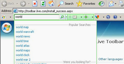 לסרגל הכלים של MSN ישנה גירסה רק לדפדפן explorer. והחיפוש נעשה במנוע MSN Live החדש. ניתן לחפש אתרים ברשת, בתאר בו אתם נמצאים, תמונות, מקומות במפה של שירות Live (כולל ישראל), חדשות וערוצי RSS (מהעולם), ושירותי חיפוש המיועדים בעיקר ליושבים בחו"ל: סרטים, מוזיקה וקניות.