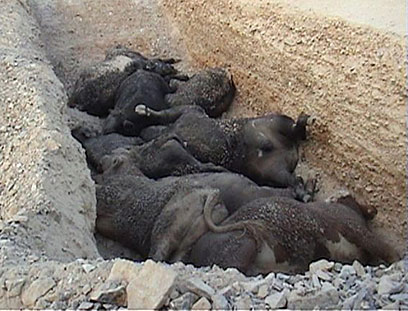 מאות עגלים שיובאו מאוסטרליה לישראל מתו בתחנות ההסגר בערבה, ככל הנראה ממחלת ריאות, רזון, קשיי נשימה כבדים ודלקות. גופות העגלים הוצאו מתחנות ההסגר על כף דחפור, נערמו ונקברו בקברים גדולים.