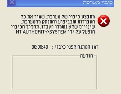 לאחר שיצרתם את קיצור הדרך, כל שעליכם יהיה לעשות הוא ללחוץ עליו בלחיצה כפולה, ואז המחשב ייתן לכם הודעה שהוא הולך להיסגר. אל תיבהלו אם ההודעה מזכירה לכם את ההודעה שהייתה נפוצה בעקבות התולעת "בלאסטר" – התולעת ההיא, למעשה הריצה את אותו קובץ אשר מכבה את המחשב.