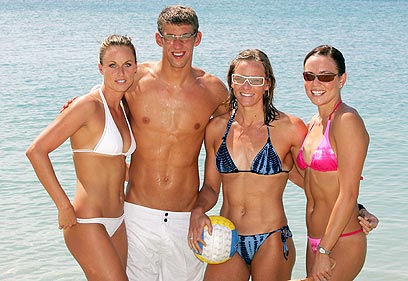 קאפלין (מימין) גם ג'ני תומפסון, אמנדה בירד ומייקל פלפס (צילום: איי פי)